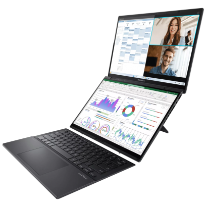 Le ASUS Zenbook Duo UX8406CA est un ordinateur portable innovant conçu pour les créateurs, professionnels et utilisateurs exigeants. Grâce à son design avancé et ses performances puissantes, il offre une expérience de travail fluide et productive.